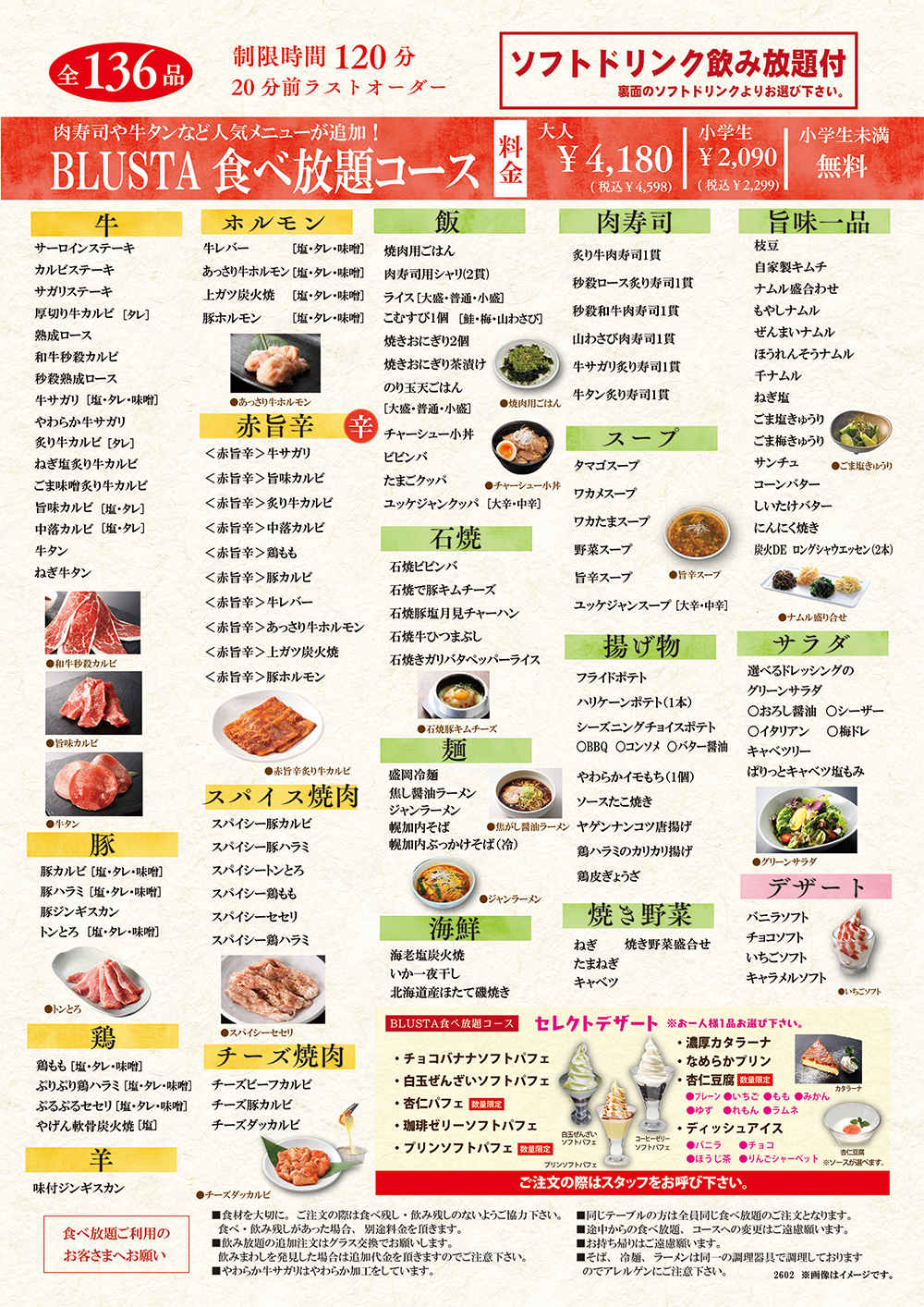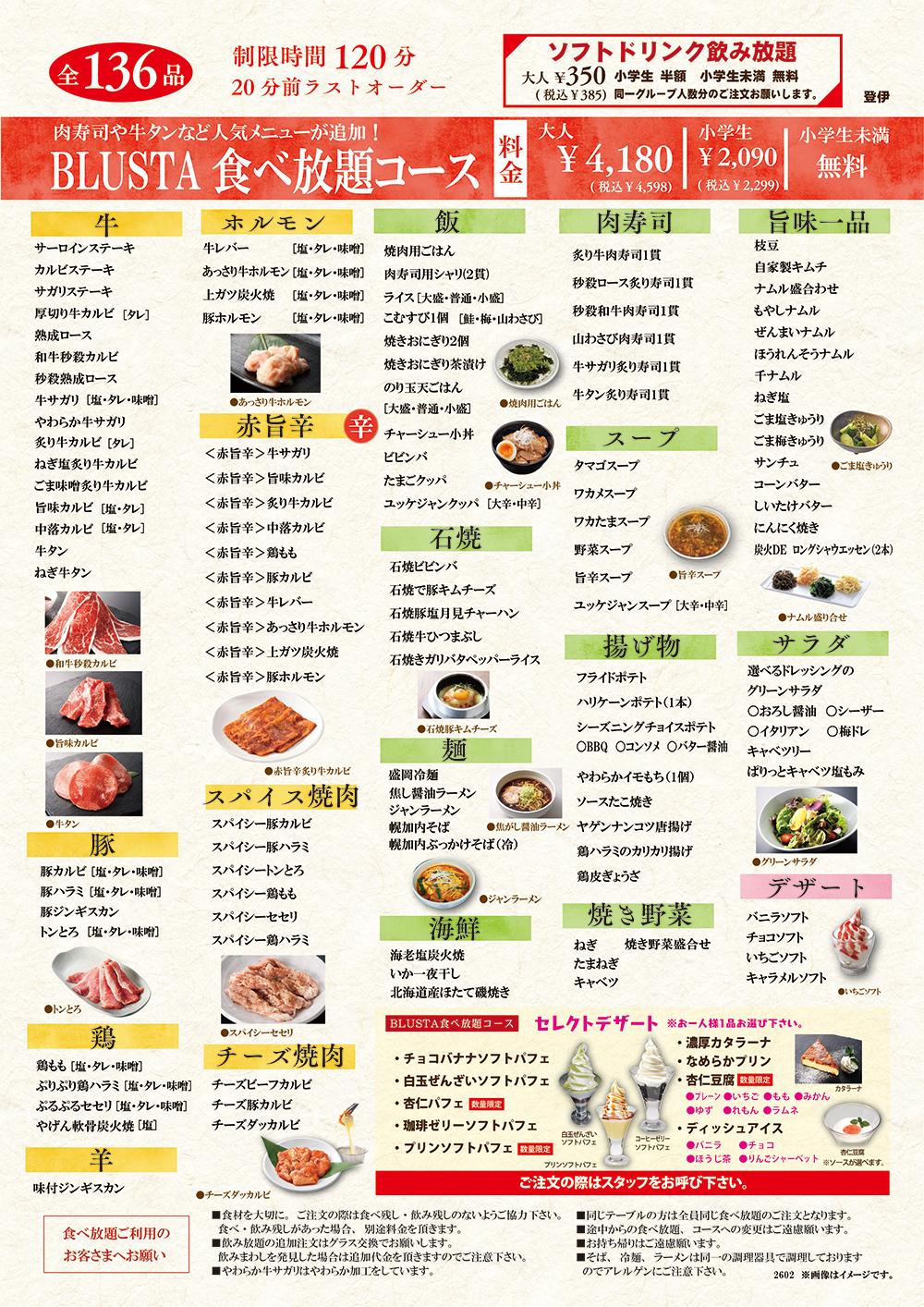落ち着いた雰囲気の当店は、焼肉業態地域初となるタッチパネルを全テーブル完備しております。ご注文も楽々で見やすく快適にお過ごし頂けます。小さなお子様連れ、団体のお客様にもお食事をして頂ける小上がり席も多く完備しています。「焼き肉食べる」=「ブルスタ行こう」そんなお店です。