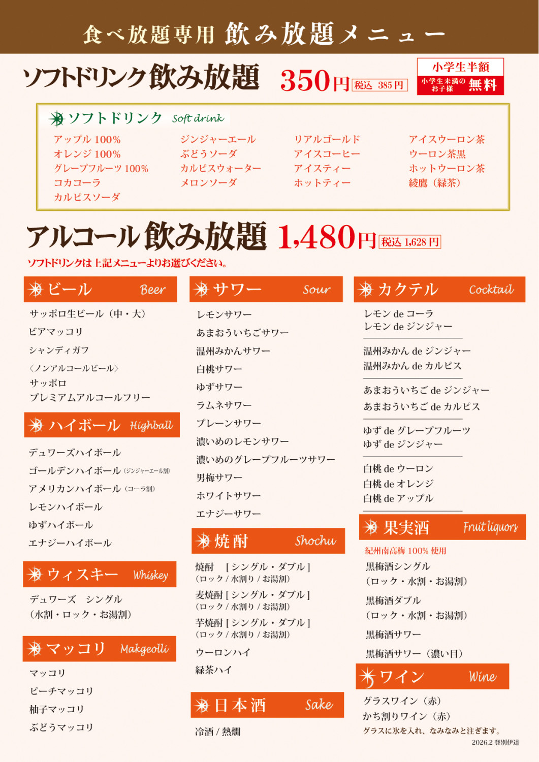 | 席数 | 全100席(テーブル席9卓32席・小上り席14卓68席) |