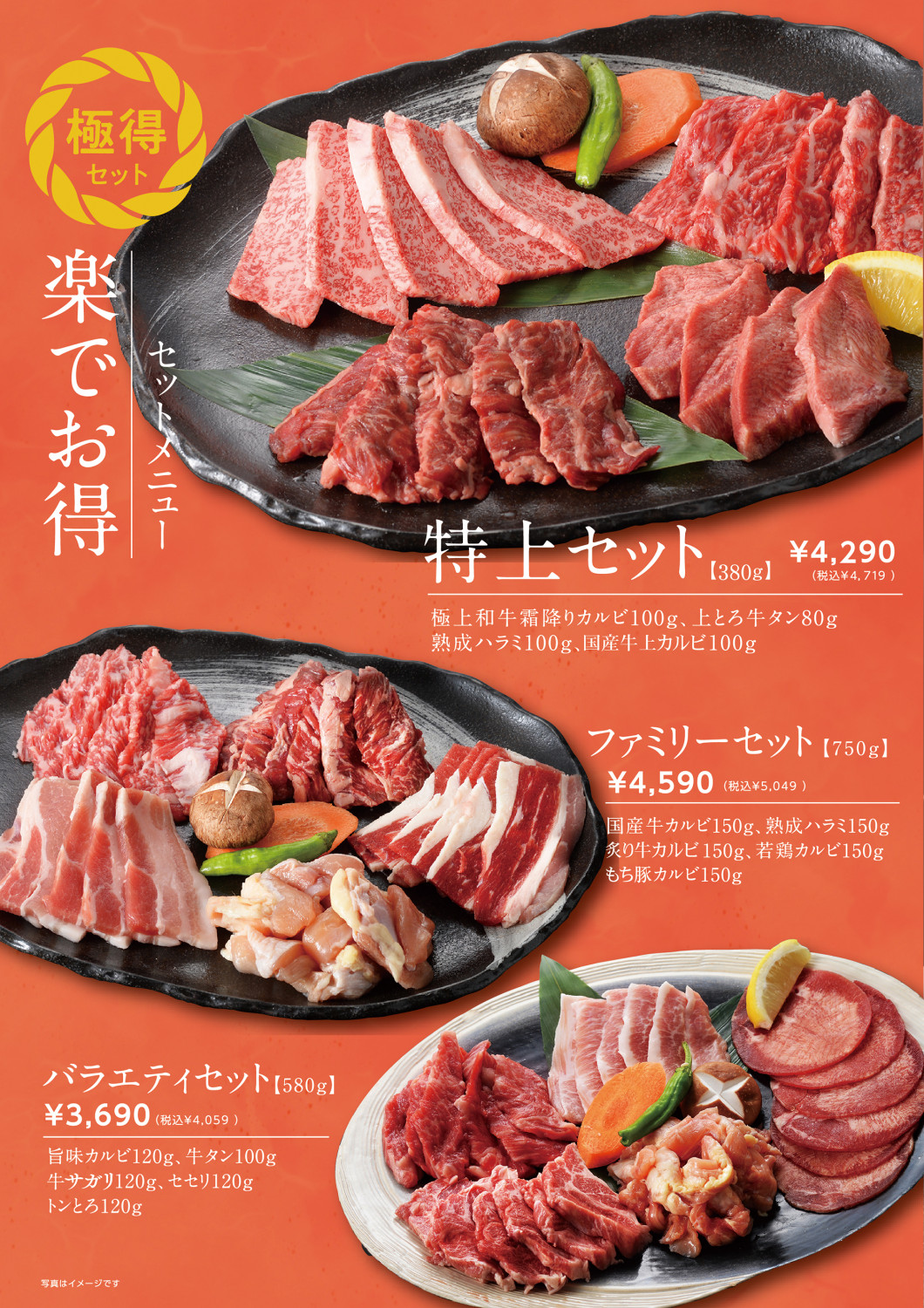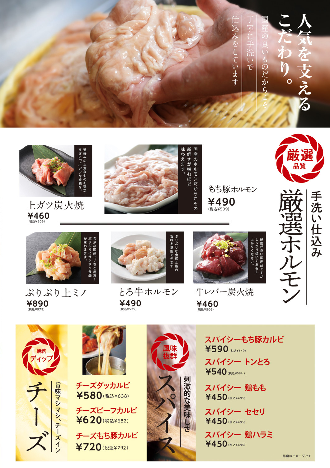 安全・安心な国産牛をはじめてとして、毎日手切りで仕込む新鮮なお肉を、429円(税込)からご提供致しております。常に変化するお客様のニーズに対応したメニュープランと、テーブル席・小上がり席のタイプから選択できる店内では、お子様から大人の方まで、幅広く満足して頂ける空間となっております。炭火焼きに対応した設備も充実しておりますので、炭火を贅沢に使用した七輪で「おいしい」という最良のサービスをご提供させていただきます。