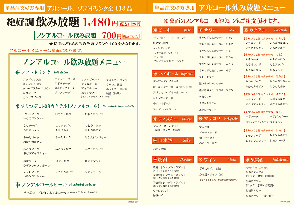 食べ放題・飲み放題メニュー